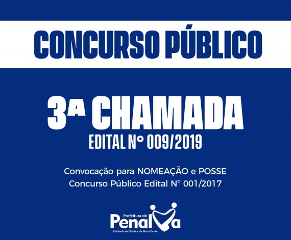 3ª CHAMADA, EDITAL Nº 009/2019 - CONVOCAÇÃO PARA NOMEAÇÃO E POSSE CONCURSO PÚBLI...